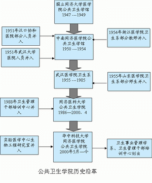 解放后,党和国家政府十分重视卫生防疫人才的培养工作,50年代初全国高等学校院系调整时,卫生部决定集中力量,在全国先办好六个卫生系。1955年山东医学院和浙江医学院卫生系撤销,二个医学院卫生系部分教师及学生约250人调整来汉与公共卫生学馆合并,准备建卫生系。