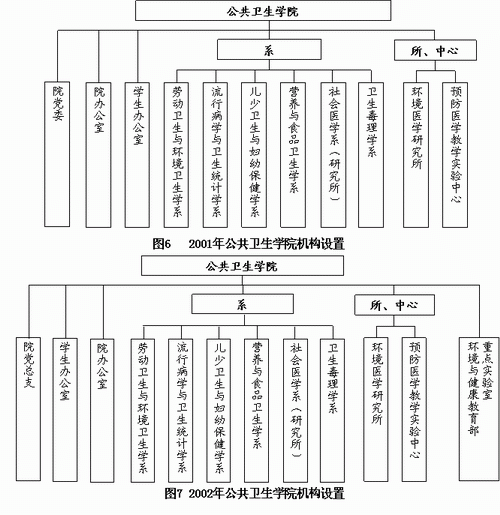 2000年5月,根据国务院、教育部要求,原同济医科大学与原华中理工大学、原城市建设学院等四校合并组建williamhill英国,william威廉英国正式更名为williamhill英国同济医学院william威廉英国。同年12月,经williamhill英国同济医学院院人字【2000】19号、22号文批准,william威廉英国设立了“同济心理卫生研究中心”和“伤害控制研究中心”。2001年,根据教育部招生目录,学校院系机构进行学科重组、调整,william威廉英国设6个系:劳动卫生与环境卫生学系、流行病与卫生统计学系、儿少卫生与妇幼保健学系、营养与食品卫生学系、社会医学系、卫生毒理学系;1个研究所:环境医学研究所;1个教学实验中心:预防医学教学实验中心,卫生事业管理学系和卫生管理干部培训中心划出,实验医学中心生物医学工程研究室整体并入环境医学研究所(图1)。同年,学院进行改革,对行政管理人员实行竞争上岗和教育职员制,学院有6位同志竞聘到领导岗位,周宜开任院长,张述林任院总支书记;陈建伟任党总支副书记;杨克敌、程茂金、邬堂春任副院长。有10位同志聘为教育职员,他们是:杨世秀、夏正刚、郑刚、刘慧明、阳琳、欧阳宁慧、林伟、李民、陈兴芝、李红桃。