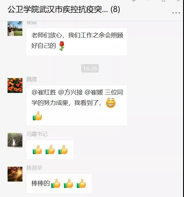 7日晚20点,三位同学到达指挥部即刻参与工作。他们第一天的工作成效就得到了武汉市疾控指挥部的高度赞扬。