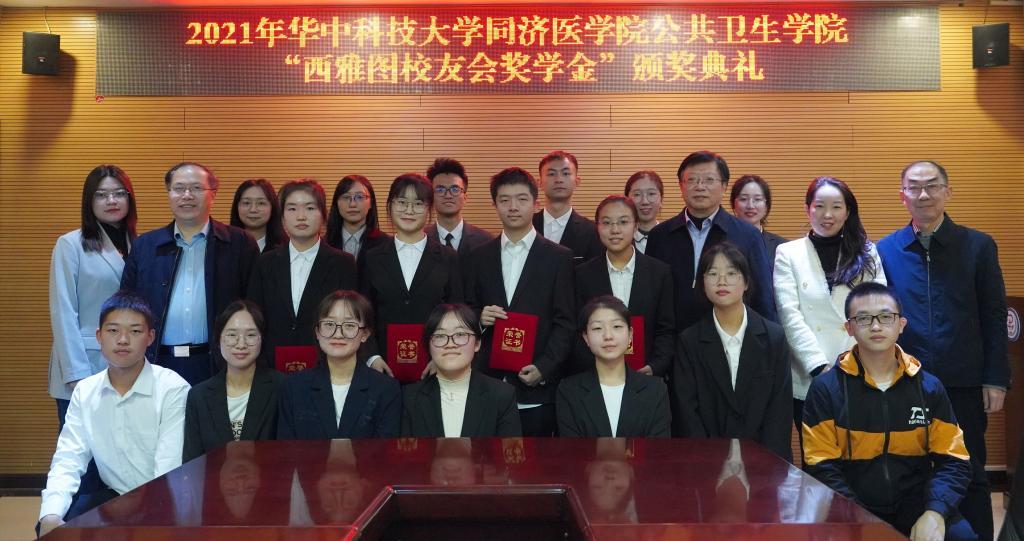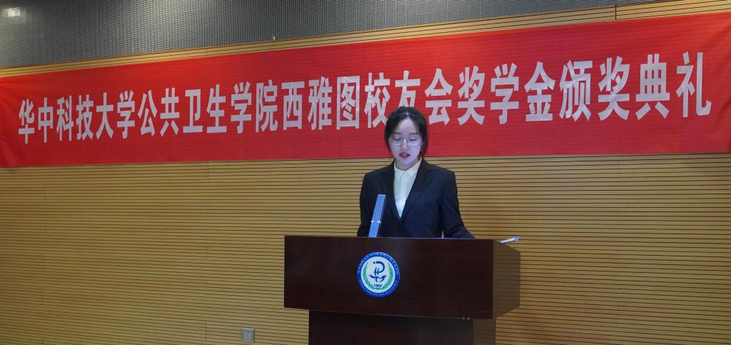 公卫学院党委副书记冯霞宣读了2021年度“西雅图校友会奖学金”获奖名单。本次共有10位优秀的本科生获此殊荣。由于疫情原因,远在海外的校友无法来到场参加活动。获奖同学们未来更好地表达感恩之情,他们走进华中大校园的各个角落,精心准备了献给海外校友的视频,以解校友相思之苦。