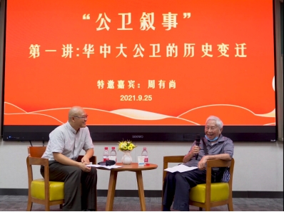 回忆起第一次来到武汉的场景,周有尚说:“1953年5月1号,我到了武汉。从船上下来后,坐的是马车。航空路都是烂泥路、篱笆路,两旁都是藕地、农田,一过解放大道,完全跟农村一样,这是它的基础。”除了城市建设上与上海天差地别,武汉在生活条件上也更为艰苦。“武汉的公共汽车是一个卡车,有个棚,人就从后面爬上去,这就是武汉的公共汽车。”工作环境上,定的校址上到处都是一片空地,教学楼、宿舍全都没有建好。国家原计划为医学院建立的5栋5层大楼(其时武汉最高楼层数为4层),也因抗美援朝而没能建成。说到这里,周有尚笑着问同学们,“换成你们,你们来不来?”没有等到同学们回答,周教授接着说,“所以很多人反对内迁。但是我们来了。那我们为什么来?就是因为国家需要。”