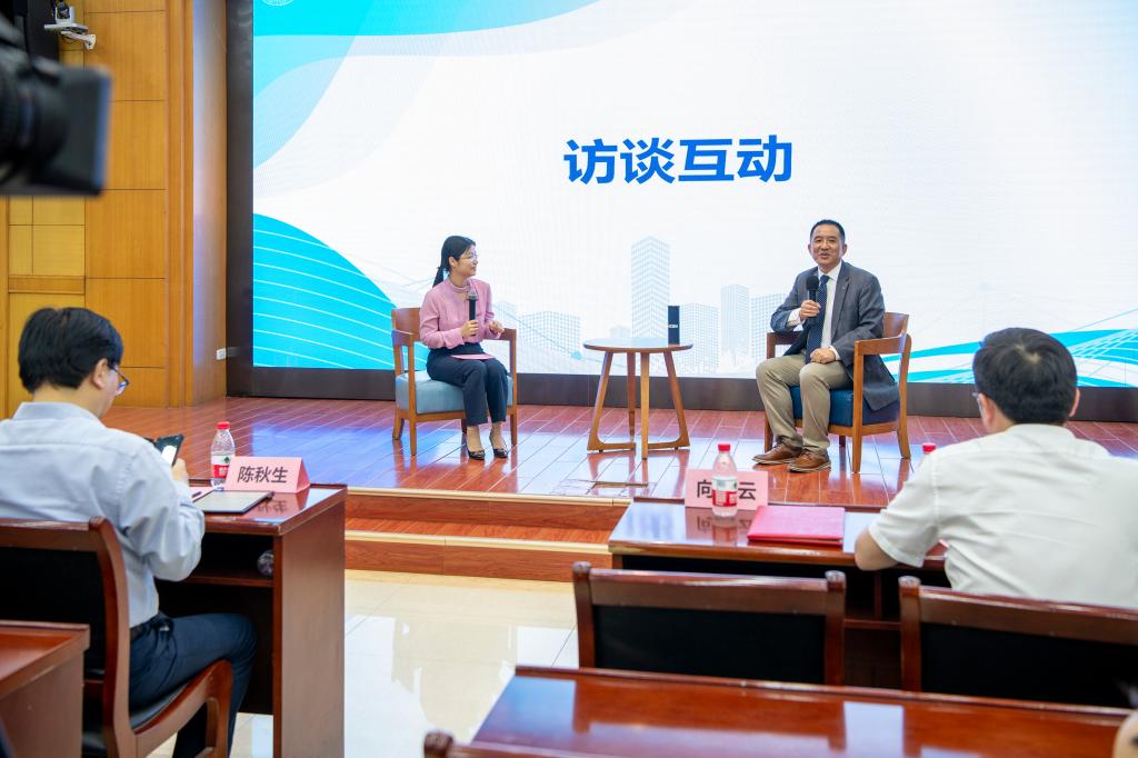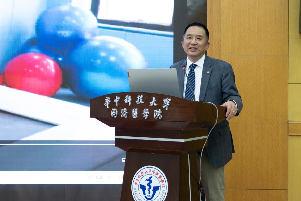 邱勇对向惠云校友回校分享表示热烈的欢迎,并为参会师生介绍嘉宾信息。向惠云校友于1991年在william威廉英国获卫生统计硕士学位,后留学美国,现任俄亥俄州立大学医学院正教授、同济医学院海外校友总会董事长。其主要研究方向为创伤、临床研究与转化医学、创新统计方法在医学与健康研究应用,发表学术论文近300篇,长期获得州政府与联邦政府研究经费8200万美元。向惠云博士在学术研究领域多次获奖。邱勇表示十分感谢校友们对学院发展的持续关注和大力支持,也期望同学们能珍惜本次交流学习的机会,从优秀校友的经验中汲取奋斗动力。