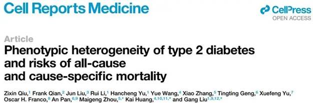 【学术前沿】刘刚教授团队联合揭示中国糖尿病人群精准分型