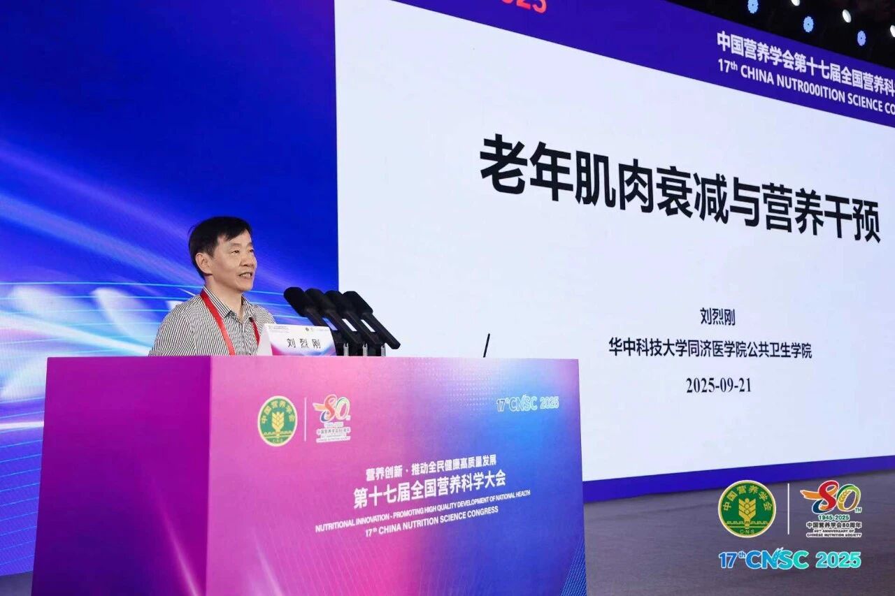 刘烈刚教授在营养与公共健康领域深耕多年,尤其在膳食营养与慢性病防控研究方面取得了系列重要创新成果。他的当选,是对其个人学术贡献的高度认可,更是对我院公共卫生学科建设与发展的充分肯定。在21日的主会场活动中,刘烈刚教授作了题为“老年肌肉衰减与营养干预”的学术报告,分享了该领域的最新研究进展与团队实践成果,获得了与会者的广泛关注。