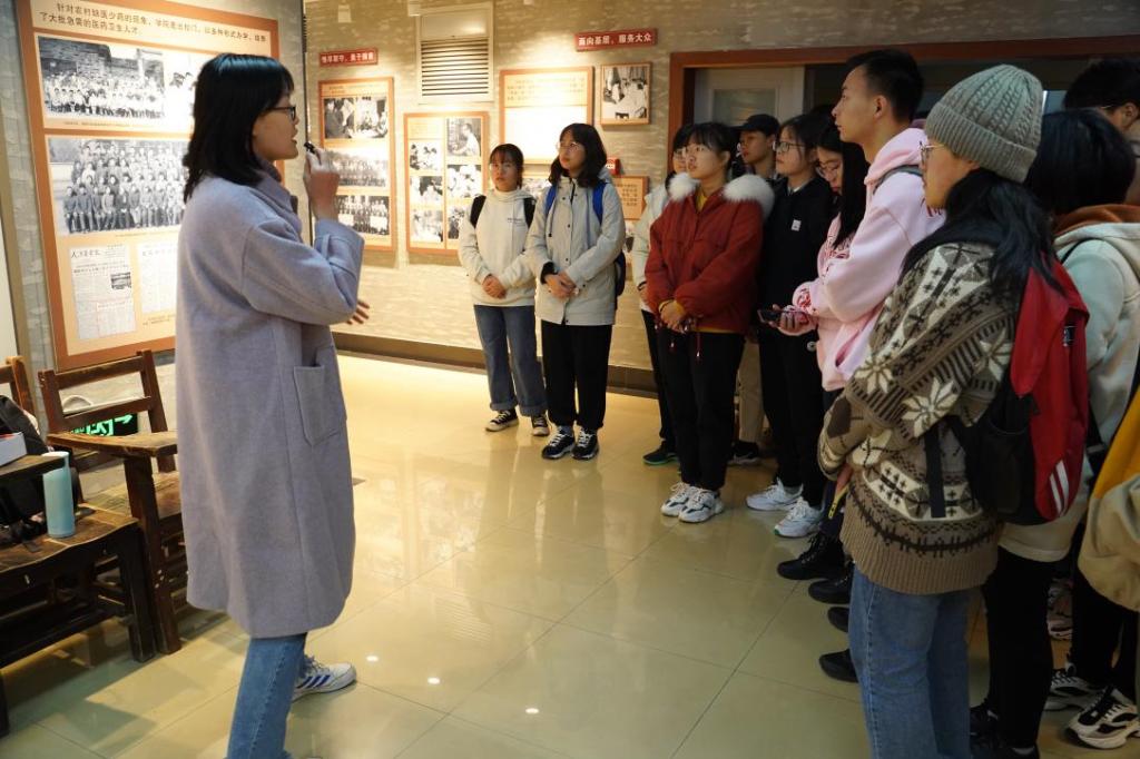 在结束室内见面会后,由预防18级的学长学姐们分小班带领学弟学妹们进行同济医学院校园的参观。来到院史文化长廊,预防16级的张毅学姐给同学们详细介绍了同济医学院的历史、现状及未来。