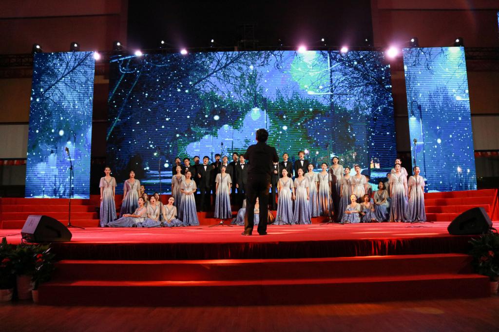 我院表演的曲目是《山楂树》、《山楂花》和《我爱你中国》,前两首旨在以舒缓悠扬的旋律歌颂在祖国快速发展下年轻人们美好的青春时光,第三首则抒发对祖国深沉的热爱之情。
