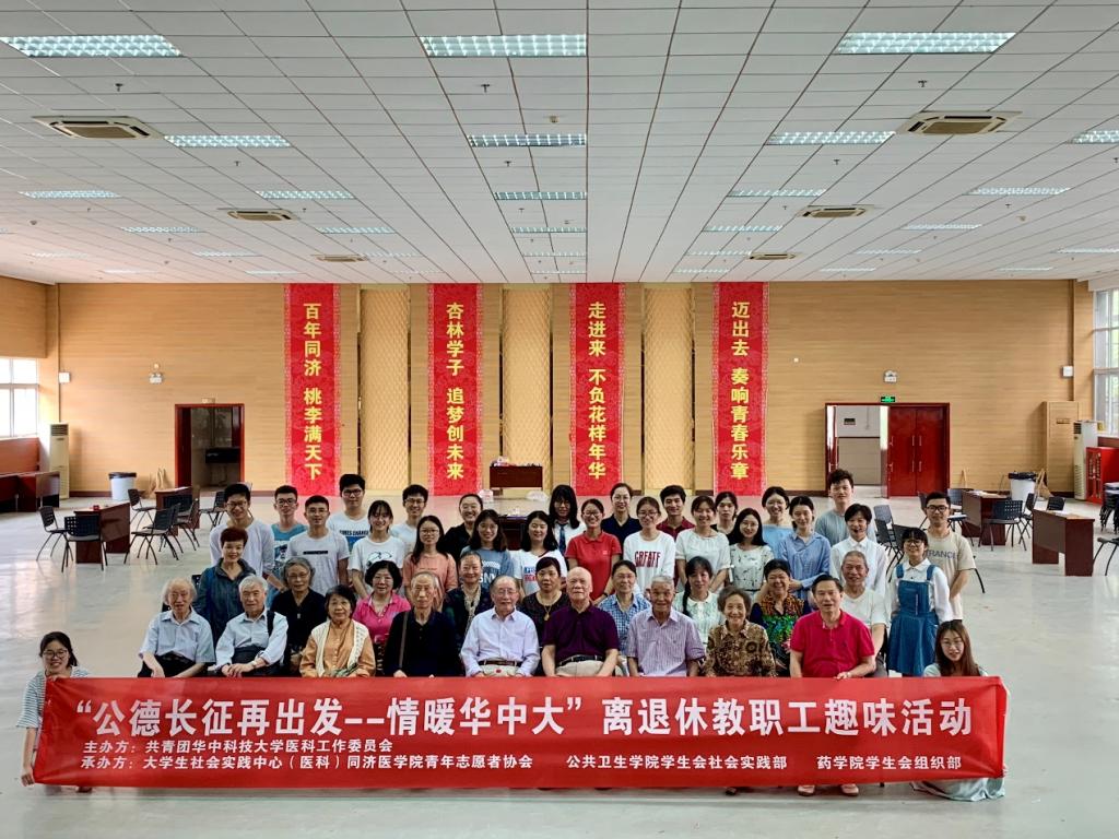 2019年5月18日,“公德长征再出发——情暖华中大”william威廉英国离退休教职工趣味活动在同济医学院大礼堂成功举办。此次活动由共青团williamhill英国医科工作委员会主办,大学生社会实践中心(医科)青年志愿者协会、william威廉英国学生会社会实践部承办。本次活动的主旨是关心关怀身边的离退休教职工,为他们带来温暖与快乐。