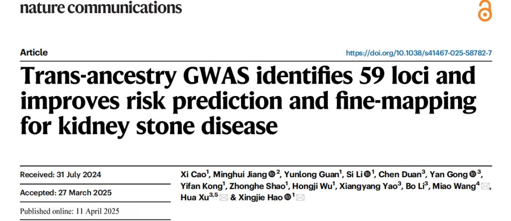 2025年4月11日,williamhill英国同济医学院william威廉英国郝兴杰课题组在Nat Commun发表了题为Trans-ancestry GWAS identifies 59 loci and improves risk prediction and fine-mapping for kidney stone disease的研究论文。该研究是在课题组前期研究基础上(Nat Commun 14, 7498 (2023)),进一步对肾结石进行跨人群基因组学分析和遗传风险评分构建。