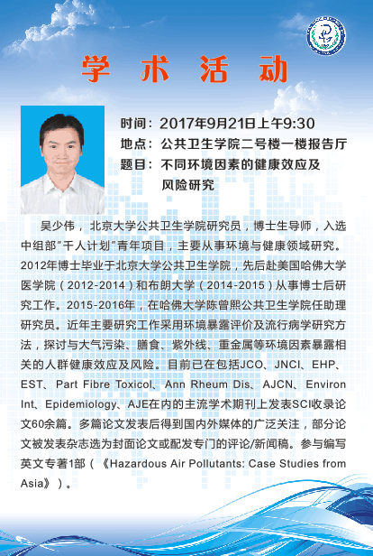 来源:公卫学院二号楼一楼报告厅 时间:2017-09-21 点击量:次