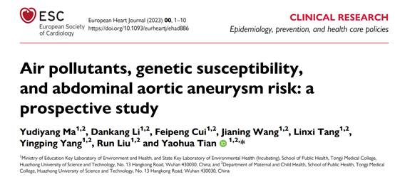 学术动态丨田耀华团队最新研究揭示大气污染、遗传易感性对腹主动脉瘤的影响