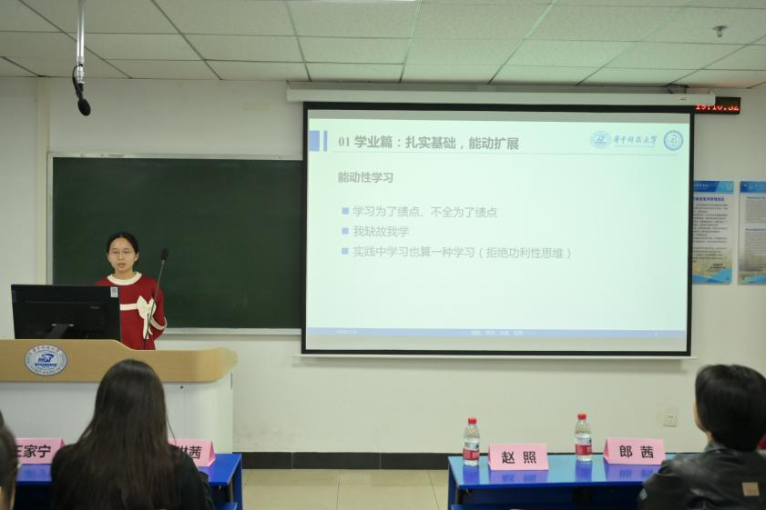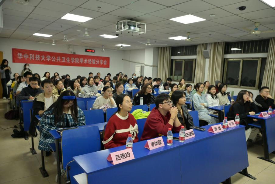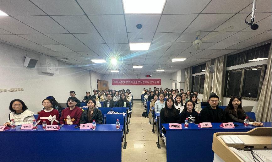 24级博士生张亦弛以第一或共一作者发表SCI论文2篇,获得“校三好研究生”和“校优秀共青团员”等荣誉,连续两年获得一等学业奖学金。他结合专业特点为低年级同学介绍了公共数据库的优势、如何合理使用公共数据库、公共数据库的不足与缺点,并以自身的研究为例,详细阐述了如何根据已有的数据库和研究热点去寻找合适的研究方向。张亦驰同学以“自信人生二百年,会当水击三千里”作为分享的结尾,与同学们一起讨论,华科公卫学子如何在可为时代,明德尚学,做有为青年。