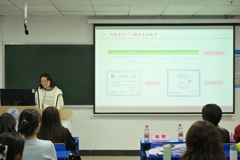 22级硕士生王家宁结合自身实际经历,分享了她在科研选题方面的经验和心得,目前她以第一或共一作者发表SCI论文6篇。她认为在科研选题时不要轻易拒绝任何一个想法,而应该结合文献检索的情况,寻找可能的创新点。这种方法不仅能够帮助自己在科研道路上找到方向,还能够激发个人的创新思维,为未来的学术研究打下坚实的基础。除了科研选题,她还提到了继续教育的重要性,她鼓励大家积极参与各种会议和论坛开阔自己的视野,并特别提到了同济暑期学校,这是一个能够让学生们接触到更多学术资源和交流机会的平台。通过这些的学习和交流,同学们可以不断提升自己的专业素养,为未来的学术生涯和职业生涯做好准备。
