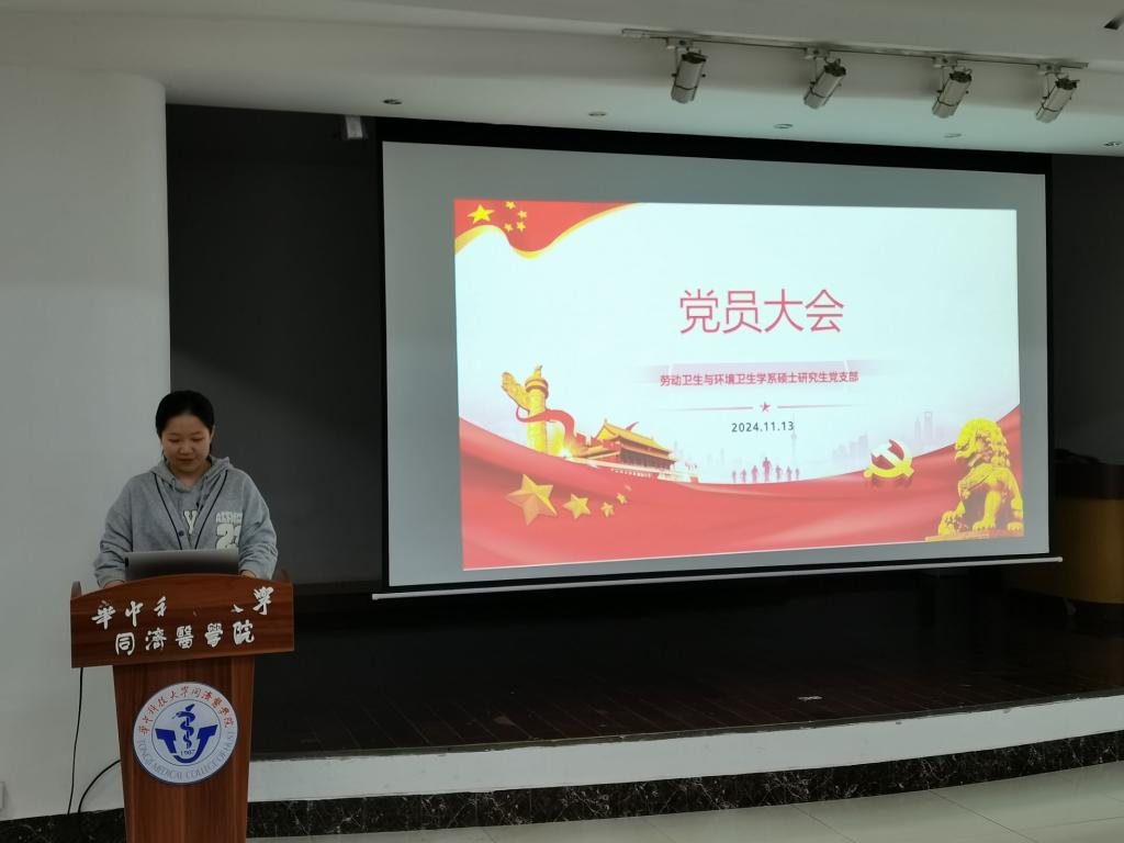 为深入学习二十届三中全会精神,加强党员思想教育,提升党员政治素质,2024年11月13日晚19点,劳动卫生与环境卫生学系硕士研究生党支部于大学生活动中心105会议室召开了十一月份党员大会,主要内容有三项,即第三期支部大讨论、十一月份主题党日活动以及发展对象推优工作。活动由支部书记韦好同志主持,支部全体党员和部分积极分子参会。