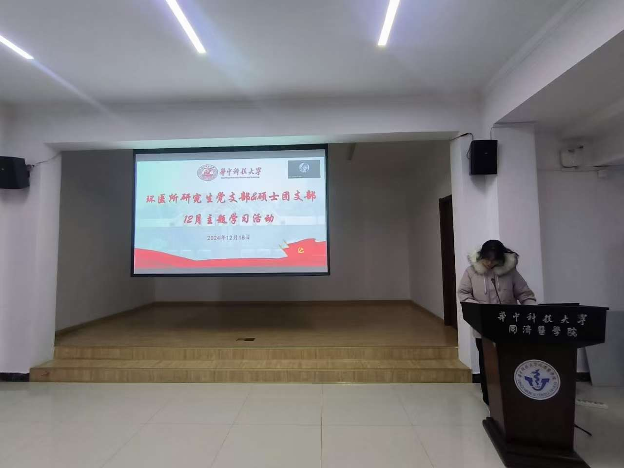 2024年12月18日,环境研究所研究生党支部、环医所硕士团支部在大学生活动中心101室成功举办了十二月主题学习活动,会议深入学习了习近平总书记在湖北考察时的重要讲话精神。