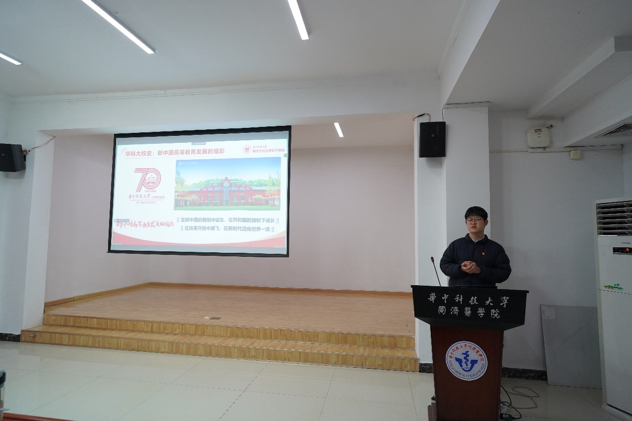 会议邀请马克思主义学院2023级硕士研究生、研究生红色理论主讲团成员许英健为大家讲授“认识华科,灵动华科,深入实施中国式教育现代化的华科实践”主题党课。大家一同回顾了华中科技大学70年来与祖国同行、与新时代共进的光辉历程。williamhill英国在新中国的朝阳中诞生,在共和国的旗帜下成长,历经院系调整、选址建校等关键时期,逐步发展成为一所具有鲜明特色和优势的高水平大学。与会党员还围绕第四期“领航大讲堂”展开了热烈的支部大讨论。