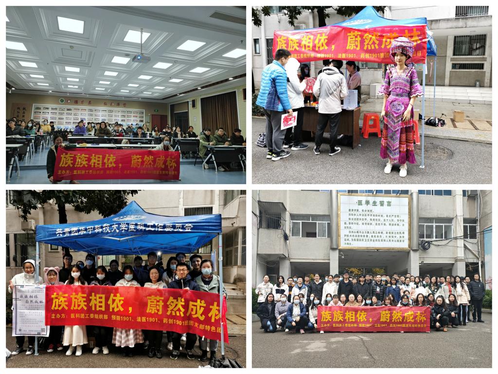 三个团支部通过一年的努力和建设,围绕“族族相依,蔚然成林”的主题,呈现了一场民族团结,共谱华章的特团故事。他们通过路演与观影活动传播56个民族的文化知识,倾听少数民族故事,展示诸如苗族短襟百褶裙、绣花围腰头饰、壮族绣球和蒙古顶碗等少数民族风情;他们通过支部成员的镜头记录藏族望果的欢庆丰收,记录巡田坝节的热舞欢歌,记录土族新年的和和美美;他们用足迹踏寻民族团结的致富路,在长阳土家族自治县,在巴东县,在广西凤山县,坚实的脚步一直在见证脱贫攻坚的路上;他们重走长征路,勇担新使命,在拉萨烈士陵园、西路军纪念馆和东北抗联陈列馆等地重读民族团结、革命奋斗的感人故事,在抗疫前线,为新冠疫情防控贡献自己的一份力量。
