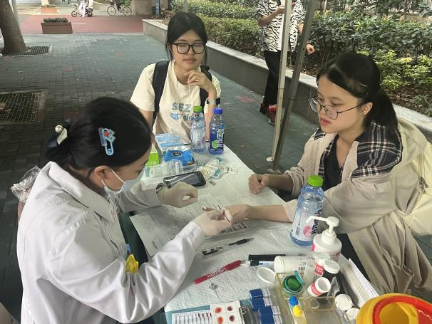 经过了前期的宣讲会与培训,许多师生应生命之约奔赴现场,献出炽热火焰般的赤忱之心。此次活动现场学子苑门口人头攒动,同济师生、职工热情高涨,争先咨询献血流程,主动挽起袖子等待献血。做好准备工作后,献血者们秩序井然地走上献血车,看着鲜红的血液缓缓流出,他们眼中充满坚定与从容,脸上满是自豪。现场知识咨询、信息登记、血压测量等工作进行得热火朝天,吸引不少人驻足观望并主动了解活动。