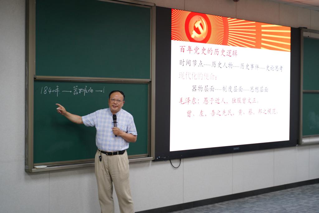 张峰教授从“中华民族伟大复兴的中国梦”出发,围绕“现代化的使命”和“社会主义的命运”,采用点、线、面的逻辑为大家梳理了1840年鸦片战争至今的关键历史人物与历史事件。从洋务运动到戊戌变法,从辛亥革命到五四运动,革命先辈在探索救国道路上经历了器物学习、制度变革、思想觉醒三个阶段,在一次又一次失败中选择了中国共产党,选择了社会主义道路。中国共产党在内忧外患中诞生,在挫折中成长,在不断磨砺中壮大,张峰教授通过讲述革命先辈的故事告诉我们早期中国共产党人的信仰与坚持。