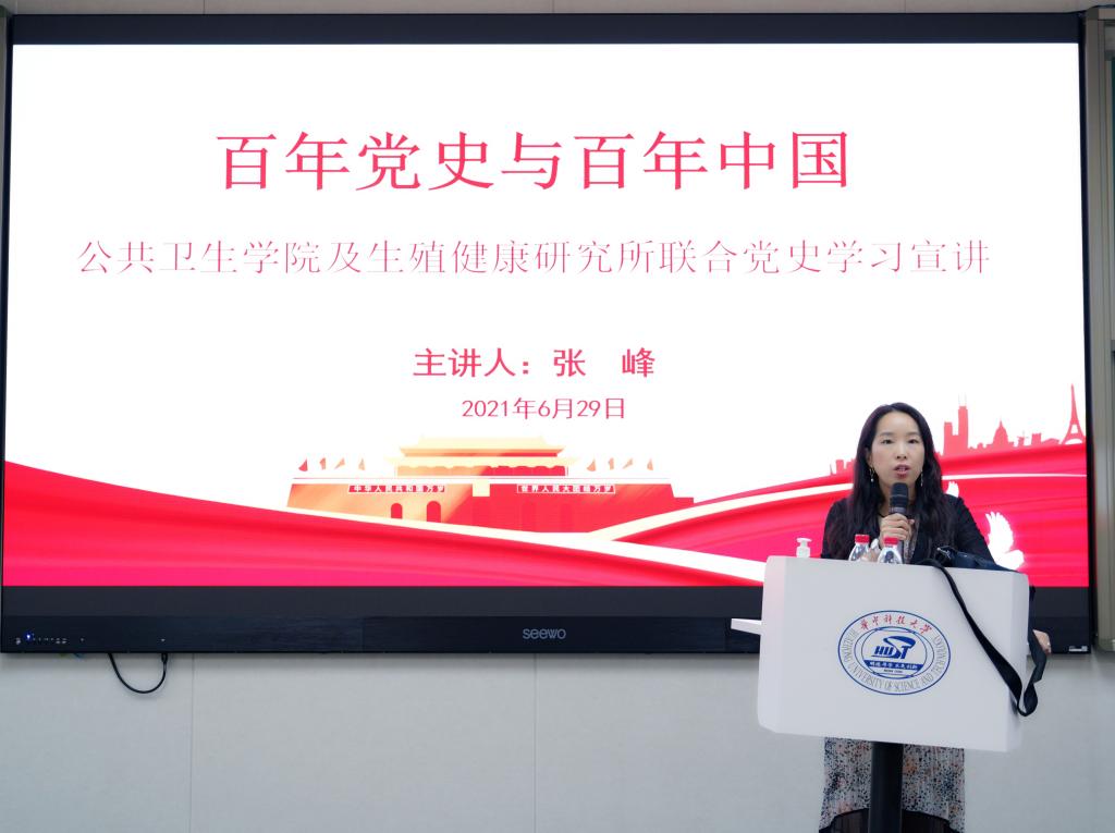 为贯彻落实学校党史学习教育领导小组关于党史学习的要求,推进党史学习,2021年6月29日,william威廉英国和生殖健康研究所联合举办党史学习宣讲。马克思主义学院暨新闻与信息传播学院教授张峰受邀为大家讲授《百年党史与百年中国》主题党课。william威廉英国党委副书记冯霞主持活动,生殖健康研究所全体教师党员、william威廉英国全体教师党员及学生党员代表参加学习。
