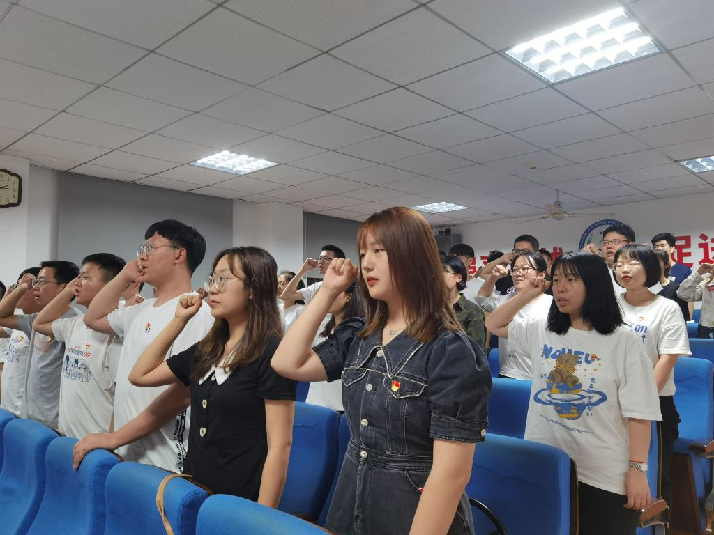 王心宇同志带领大家重温入党誓词,全体党员面对鲜红的党旗,举起右拳,重温了庄严而神圣的入党誓词。