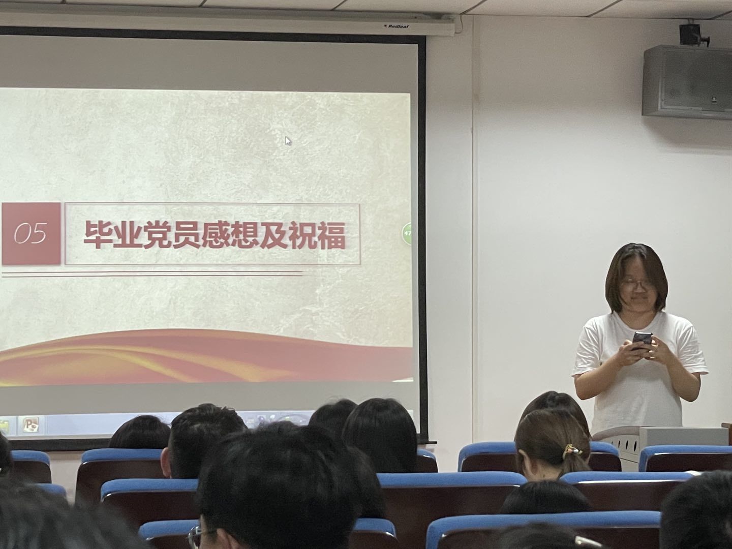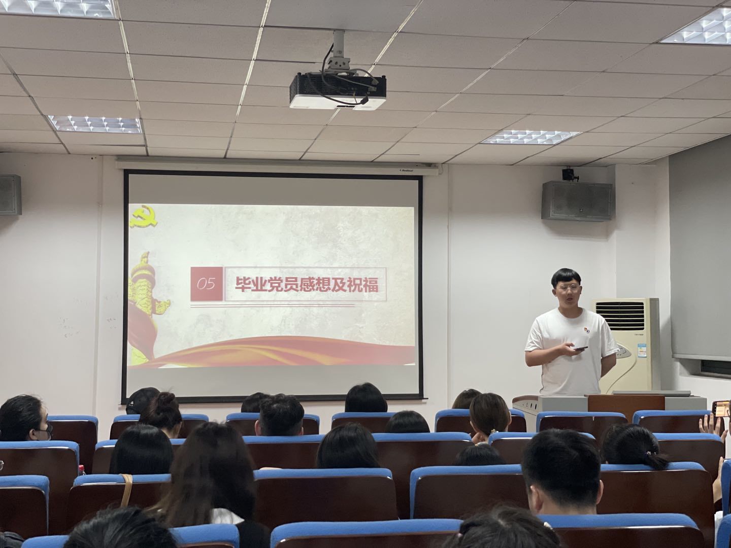 毕业生党员同志们纷纷上台寄语,或是对五年大学生活的总结,感慨时光如白驹过隙;或是对学弟学妹的建议,从学习、生活、工作、社交等方面分享“过来人”的经验,勉励学弟学妹们不畏风雨、勇往直前;或是对学院和老师们的祝福和感谢,字字饱含真情,句句情真意切。