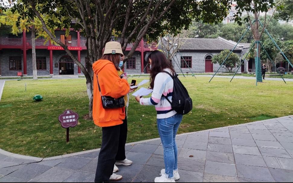 随后实践队员来到了中共“五大”开幕式旧址,中国共产党第五次全国代表大会于1927年4月27日至5月9日在武汉召开,在党的建设史上具有重要意义。跟随着讲解员的脚步,实践队员走过了中共五大开幕式会场、中共五大历史陈列和中国共产党反腐倡廉历程展三个展览场所,在讲解中逐步走近了中共五大,了解了中共五大召开的时代背景和历史意义,也愈发清晰地认识到了中国共产党人坚忍不拔的意志和力挽民族之将倾的担当。除了参观历史陈列外,实践队员们还对前来参观的游客进行了问卷调查以了解公众对中共五大及其会址纪念馆的认知程度并向公众普及中共五大的基本知识,并通过了解公众参观会址的意愿为中共五大及其会址的宣传普及提供切实可行的参考方案。