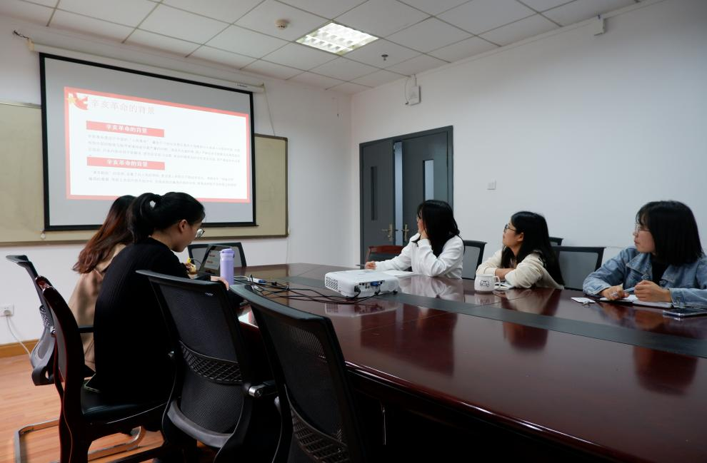 为保证实践调研工作高效顺利开展,11月4日,调研团队召开了前期准备会议。本次会议主要内容包括集中学习,明确实践调研的目的,商讨实践调研的时间、任务分配以及成果的展现形式等。会上,通过播放辛亥革命武昌起义相关影像资料,团队成员共同学习了辛亥革命的历史,韩惠楠和李交研同志分享了前期自主学习的心得。随后,大家逐一发言,分享学习体会并提出对本次实践调研的建议,最后合作制定了调研方案。