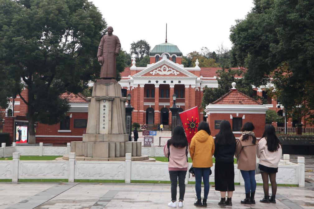 11月7日,突如其来的降温并没有打乱原本的调研计划。纪念馆门前的广场上,首先映入眼帘的是孙中山先生的雕像,他目光如炬地凝视着前方,纪念馆大门上飘扬着象征着决心用武力推翻清王朝统治的铁血十八星旗,整个广场静悄悄,这一切仿佛都在无声地诉说着那段风雨飘摇的历史,诉说着无数仁人志士为救国救民,用血和生命抗争的光辉岁月。
