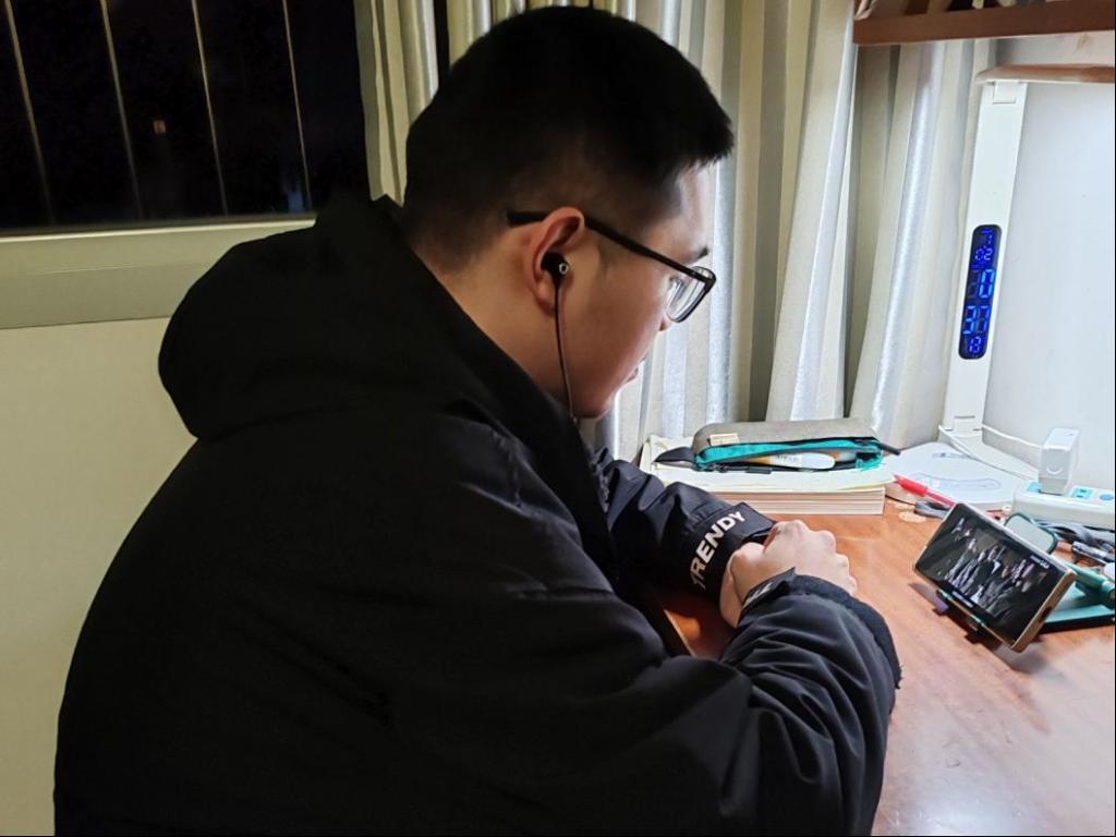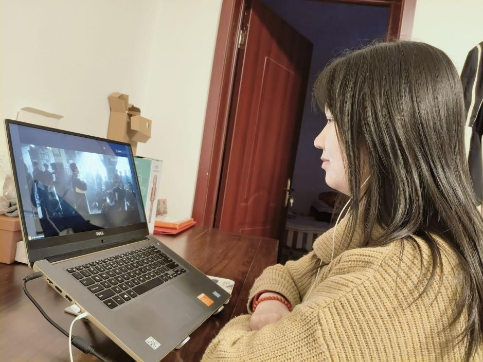 图为阿迪拉木·迪力木拉提、马星辰、张欣宇、伍锦东同志线上集体观影