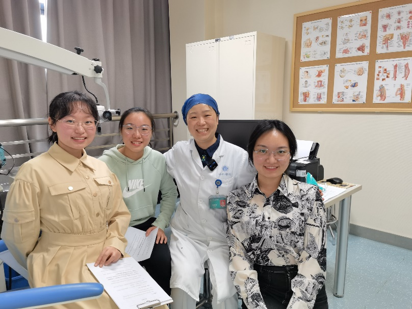 (图上至下分别为:余护士长与支部成员合照、支部成员采访钟毅主任)