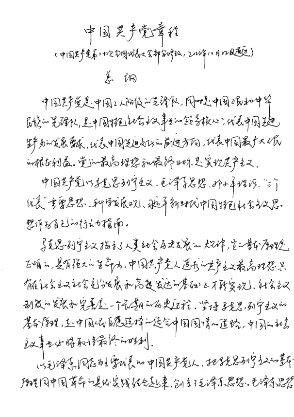 党建辅导员蒲琳老师抄写的部分党章