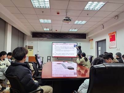 本次会议由李娴丽同志主持。会议第一部分由谢金池同志为大家进行了一场生动的实践成果分享汇报,带领大家了解了此次“红博探史承遗志,党旗领航续新篇”——武汉革命博物馆研学实践活动内容与感想。