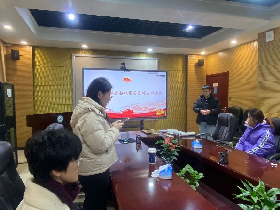 之后,入党介绍人杨宁、李悦平同志介绍刘莎莎同志积极分子期间思想、工作情况。党支部组织委员程瑞洁同志代表支部委员会报告对刘莎莎同志的审查意见。与会党员潘苗新同志发表意见,对刘莎莎同志能否入党进行充分讨论。