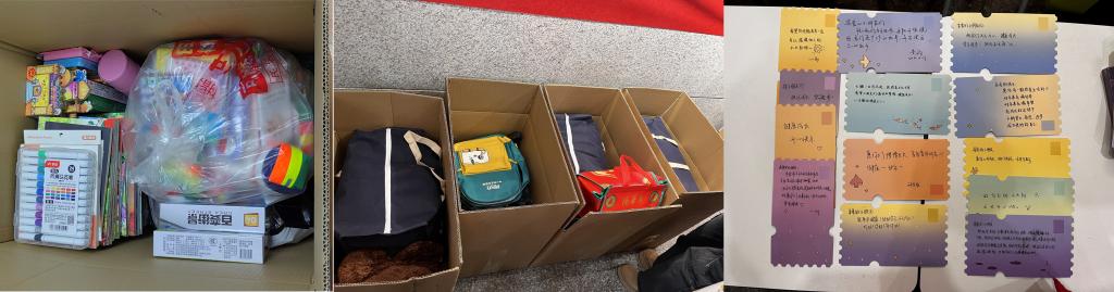 活动现场,老师和同学们还书写了一张张满载祝福与期望的明信片,字里行间都是对孩子们最真挚的关爱与鼓励。这些明信片将连同捐赠物品一起送往孩子们的手中,以文字为载体,传递跨越千里的温暖情谊。