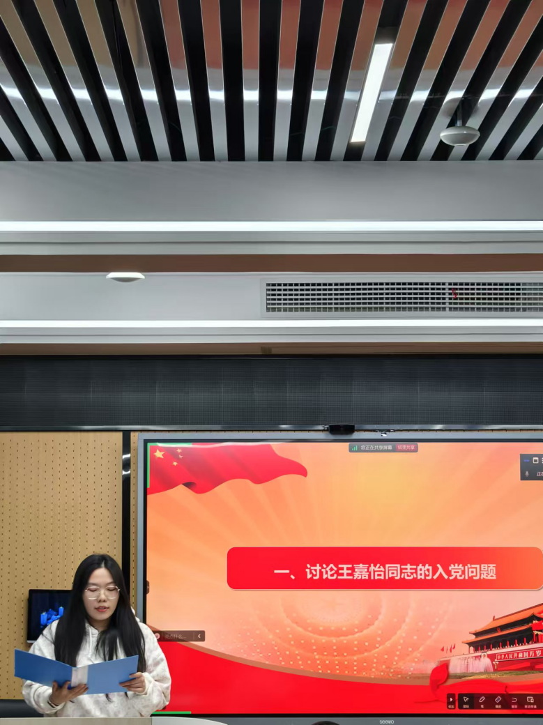 会议的第二项议程是讨论接收发展对象王嘉怡、李怡林同志成为预备党员。