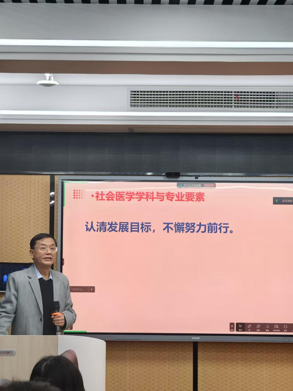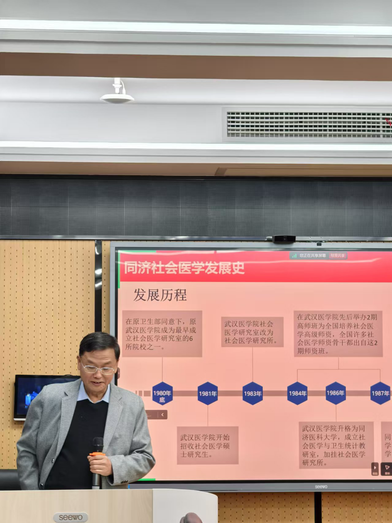 卢老师以“坚定专业方向,建设健康中国”为主题向我们介绍了我院社会医学与卫生事业管理学系的发展历史和光辉历程。卢老师以自己的亲身经历回顾我系从无到有到如今发展壮大为国家社会医学和卫生事业管理学事业培养出一代代人才的艰辛历程。