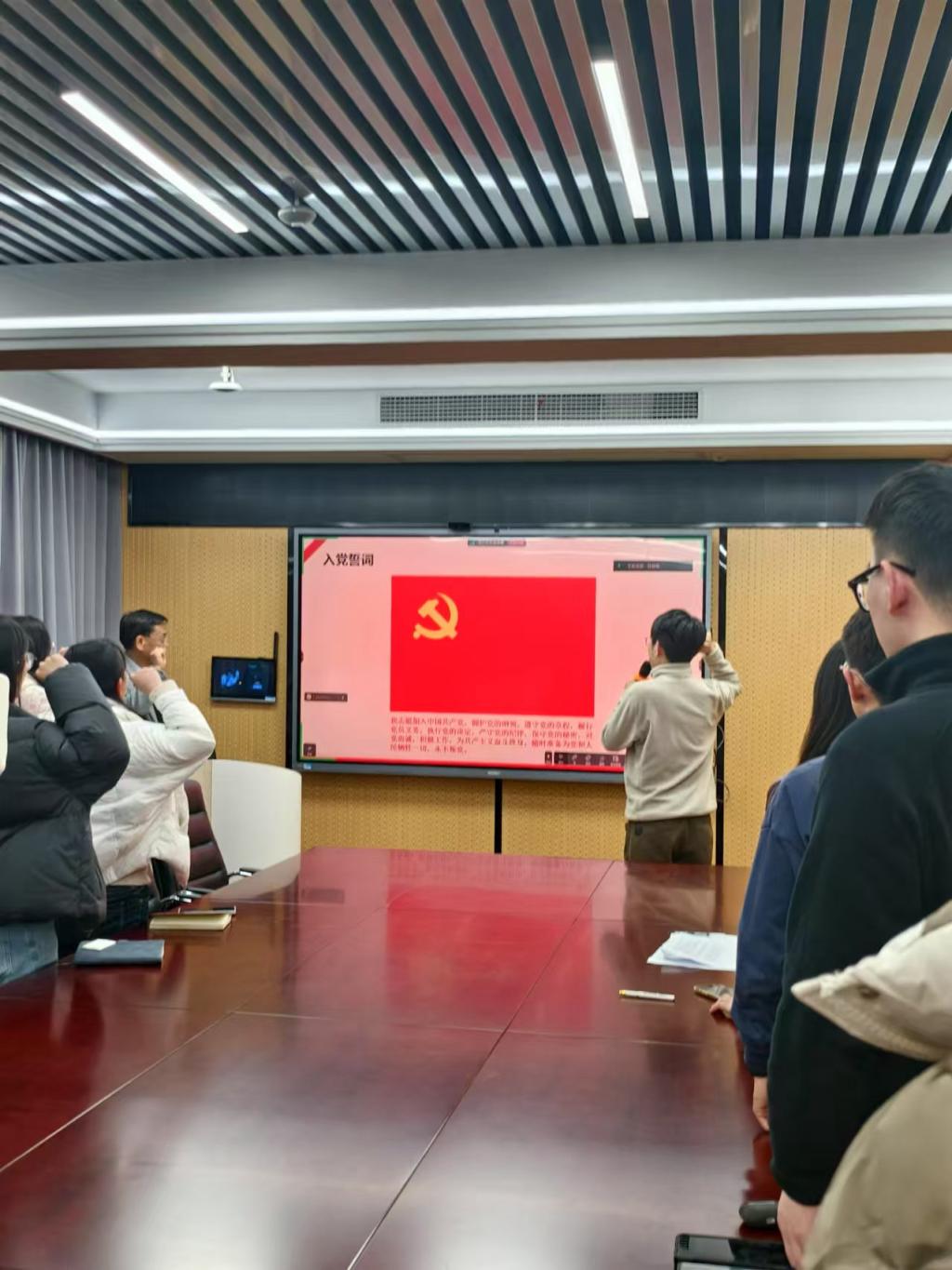 会议的最后,卢祖洵教授与支部全体党员同志一起在党旗下宣誓,重温入党誓词。