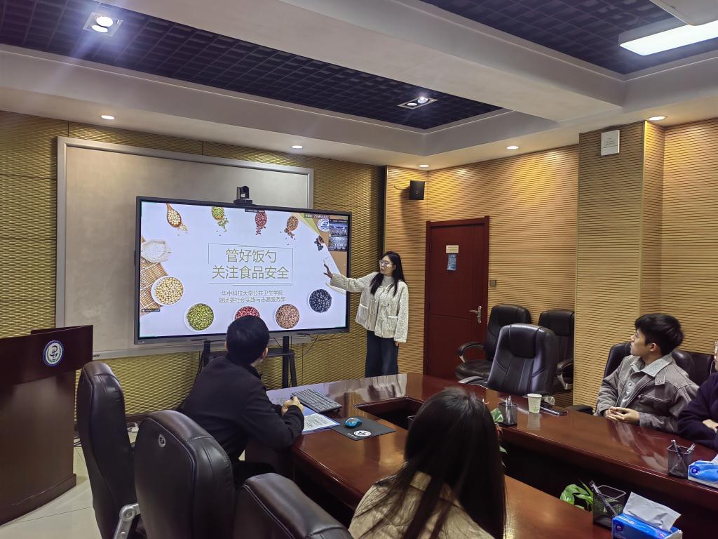 仪式的最后,公卫学院研究生刘琳同学向务川第五小学的小朋友开展了以“食品安全”为主题的科普宣讲,宣讲内容生动有趣,贴合实际,兼具教学性和趣味性,寓教于乐,有效提高了小朋友们的食品安全与健康意识。