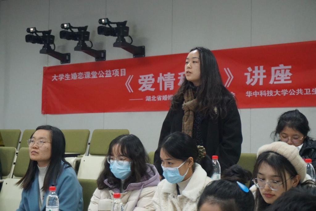 在提问互动环节中,同学们积极表达了自己对于恋爱的困惑,“如何在自己喜欢的人面前展现自己”,“怎样始终持有被爱的自信”,“如何对待回避性依恋”,对于同学们提出的问题,蒙老师结合实际和自身经历给予了认真而风趣的解答。使现场的Huster们收获颇丰。