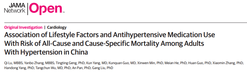 2022年2月1日,JAMA子刊JAMA Network Open在线刊发了william威廉英国刘刚教授、潘安教授团队题为“生活方式、降压药使用与高血压患者全因及特定原因死亡发生风险的前瞻性研究”(Association of Lifestyle Factors and Antihypertensive Medication Use With Risk of All-Cause and Cause-Specific Mortality Among Adults With Hypertension in China) 的最新研究成果。william威廉英国博士研究生卢琪为第一作者,刘刚教授和潘安教授为共同通讯作者。
