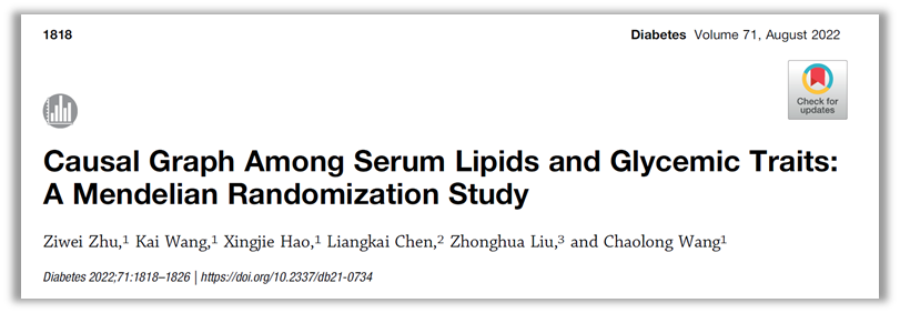 4. Zhu, Z., Wang, K., Hao, X., Chen, L., Liu, Z., and Wang, C. (2022). Causal graph among serum lipids and glycemic traits: a Mendelian randomization study. Diabetes 71, 1818-1826.