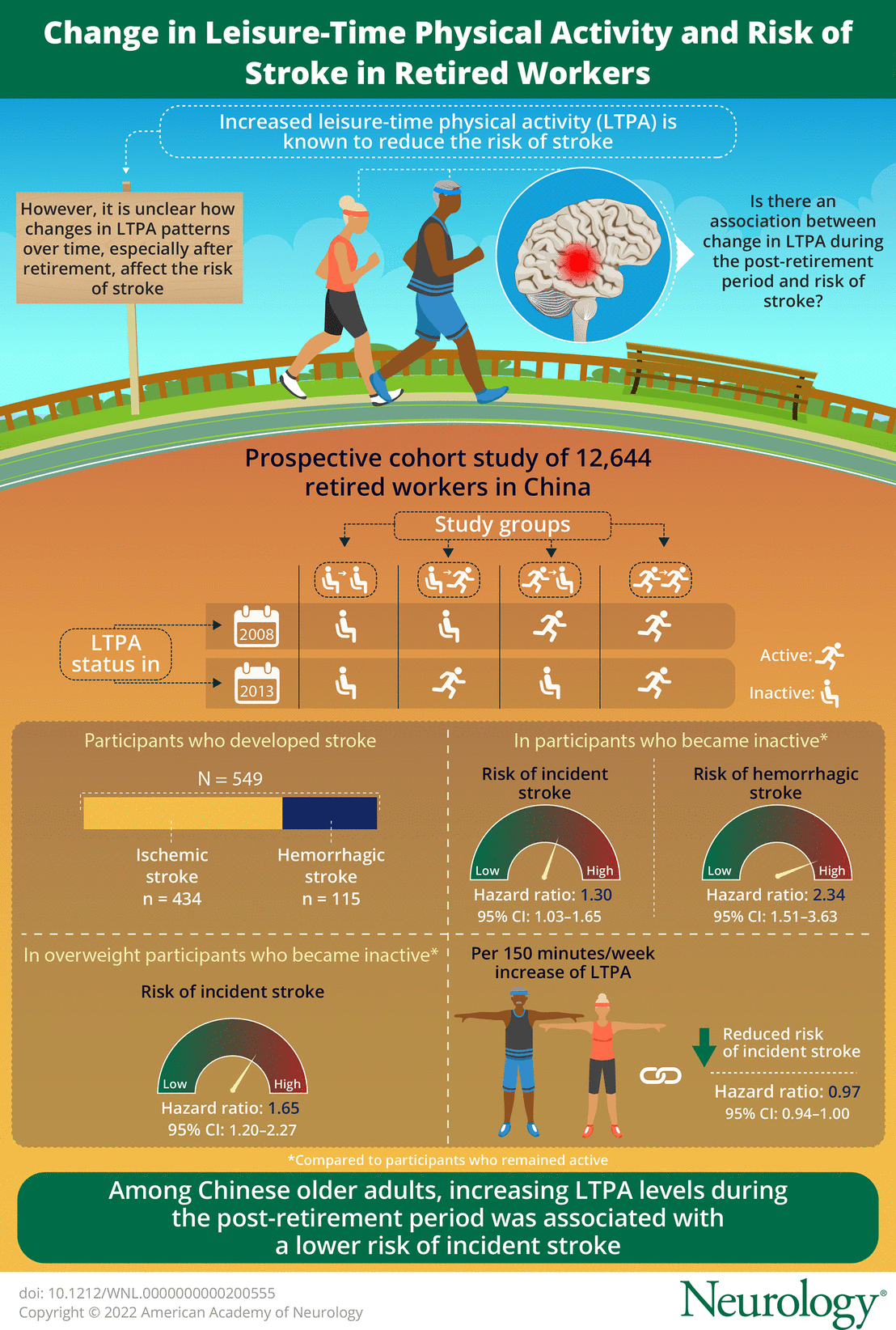 公卫学院喻快副研究员最新研究成果提示退休人群提高休闲运动水平可显著降低脑卒中发病风险