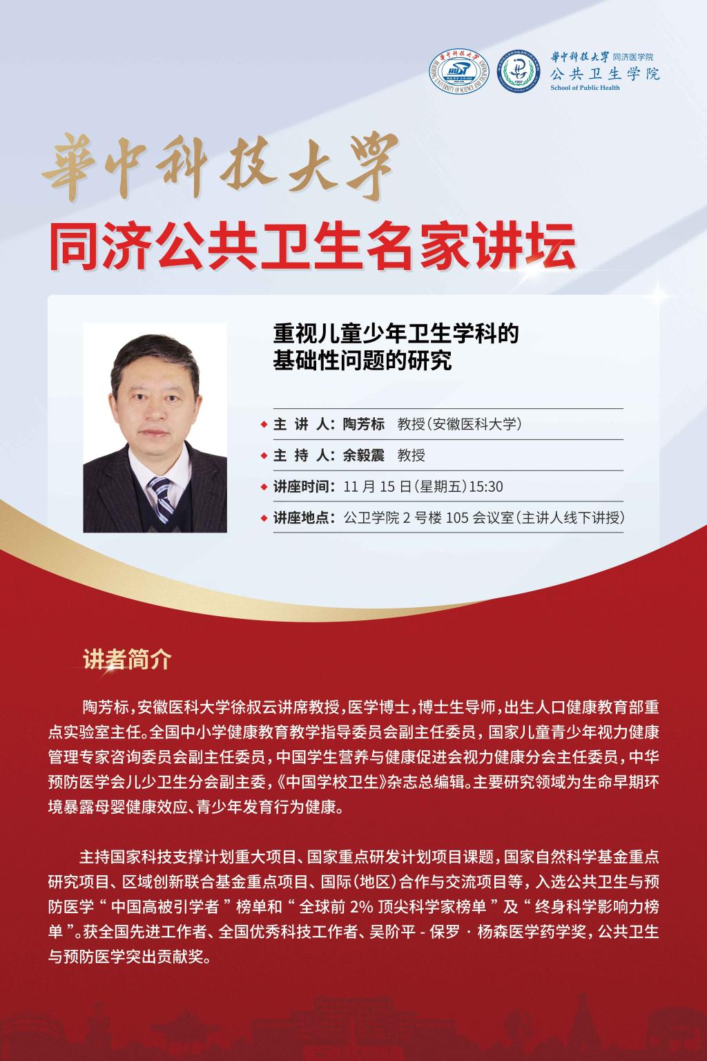 【主讲嘉宾】陶芳标 教授(安徽医科大学)